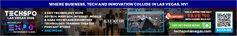 The annual TECHSPO Las Vegas 2026 Technology Expo returns November 4th to 5th, 2026 to the Luxor Las Vegas Hotel & Casino in Las Vegas.
