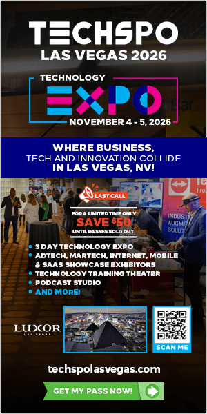 TECHSPO Las Vegas 2026 is a two day technology expo taking place November 4th - 5th, 2026 at the Venetian Las Vegas Resort in Las Vegas, Nevada. TECHSPO Las Vegas brings together developers, brands, marketers, technology providers, designers, innovators and evangelists looking to set the pace in our advanced world of technology. Exhibitors showcase the next generation of technology & innovation, including; Internet, Mobile, Adtech, Martech and SaaS technologies. Be prepared to be inspired, amazed and educated on how these evolving technologies will impact your business for the better.